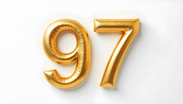 Numeral 97, ninety seven, from decorative balls, isolated on white background