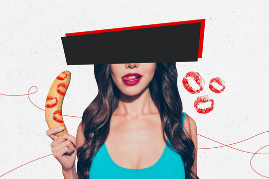 Collage sketch picture of lovely cute gorgeous woman hold sweet yellow banana fruit isolated on drawing background