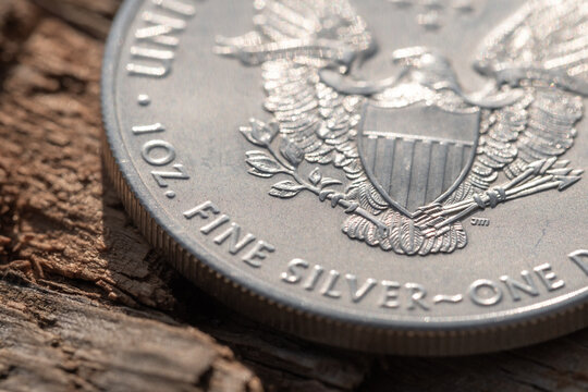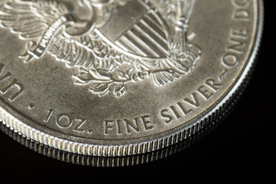 Makro: Silbermünze / Silber-Unze / Edelmetall / Anlagesilber (1 oz American Silver Eagle - Fine Silver)