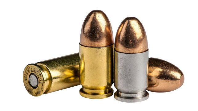 Pistol cartridges 9 mm on a smooth glossy surface with reflections. Ammunition for pistols and PCC carbines on a dark back.