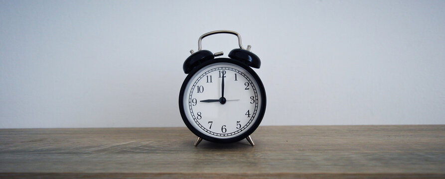 Analog alarm clock pointing at hours, minutes, seconds to display time - Photo of digital timer for website, deadline, illustration, banner, meeting - 9 am 9 pm 9am 9pm 21h 21