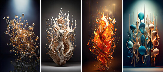 3D abstract elements, wallpaper set for mobile devices. Vertical images of futuristic background, 9x16 size