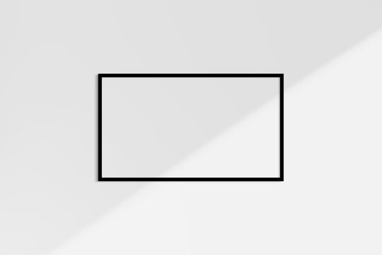 Horizontal frame mockup 16:9, 9:16 landscape. Single black frame mockup. Clean, modern, minimalist, bright. Shadow overlay.