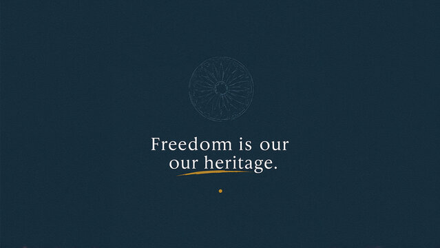 Minimalist vertical Independence Day background with embossed Ashoka Chakra, serif quote, saffron-green accents on deep navy — clean, modern, and elegant for stories or status.