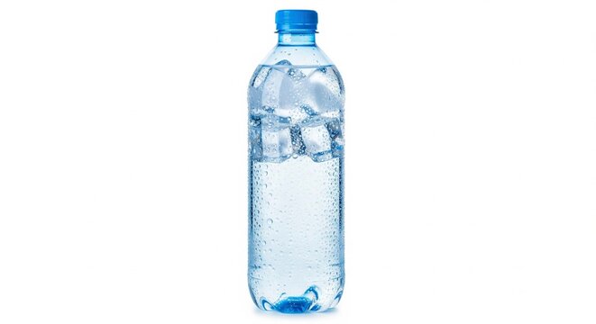 Crystal Clear Hydration – Ice-Filled Water Bottle on White Background