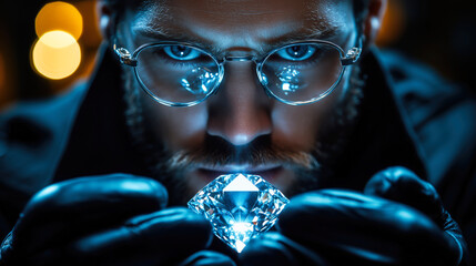 Jeweler observing a big diamond with light effects