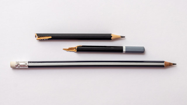 A powerful image of a broken pen lying beside a torn notebook, symbolizing the silencing of voices and the suppression of truth.