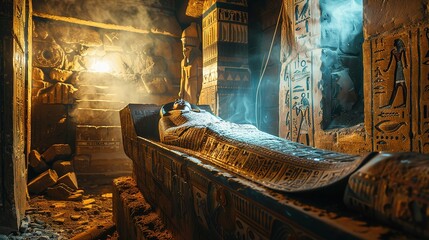 Woman stands before tomb at dawn. Emotional moment filled with hope. Biblical scene evokes faith, reflection in early morning light. Religious imagery portrays sorrowful transition to new beginning.