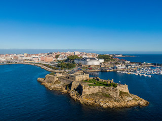Aerial view of A Coruna and Castle of San Anton in Galicia