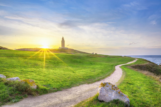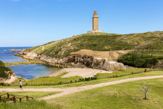 A Coruna, Spain. The Tower of Hercules, an ancient Roman lighthouse and major historical landmark in Galicia