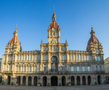 City hall of A Coruna and Maria Pita square. Galicia