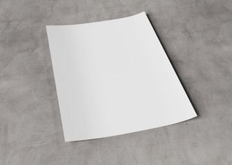 A4 blank paper sheet mockup on concrete 3D rendering