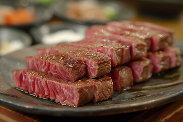 Closed up of premium Wagyu A5 sliced beef for yakiniku barbecue grill, japanese luxury meal, delicious plate with protein cousine