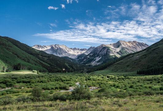 The Elk Mountains stand above the Ashcroft Ghost Town on Castle Creek Road near Aspen, Colorado and Ashcroft, Colorado in the Rocky Mountains