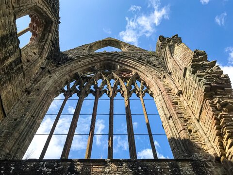 The ruins of Tintern Abbey, founded by Walter de Clare, Lord of Chepstow, on 9 May 1131. It is situated adjacent to the village of Tintern in Monmouthshire, Wales, UK.