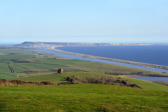 Clear view to Portland Dorset from Abbotsbury with Chesil Beach.