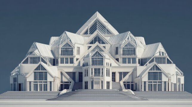 Grand White Modern Mansion with Intricate Geometric Pyramid Roofline Design