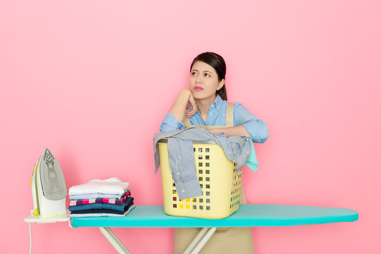 An unwilling woman shunning and keeping her distance from the left area. Using her hands to gesture to stop. Avoiding and steering clear of someone.