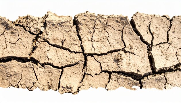 Dry Soil Crack Texture Isolated on White Background Representing Drought and Climate Concept