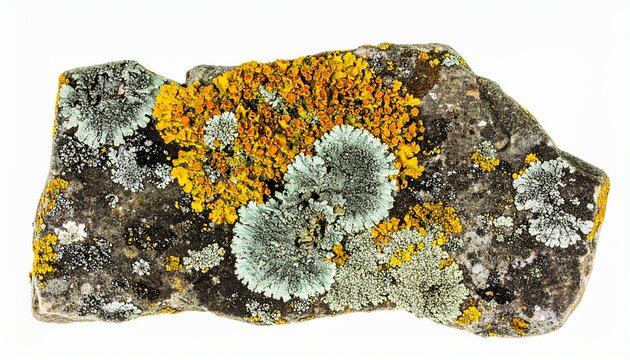 Lichen on Old Stone Isolated on White Background Representing Symbiosis between Biotic and Abiotik in Nature