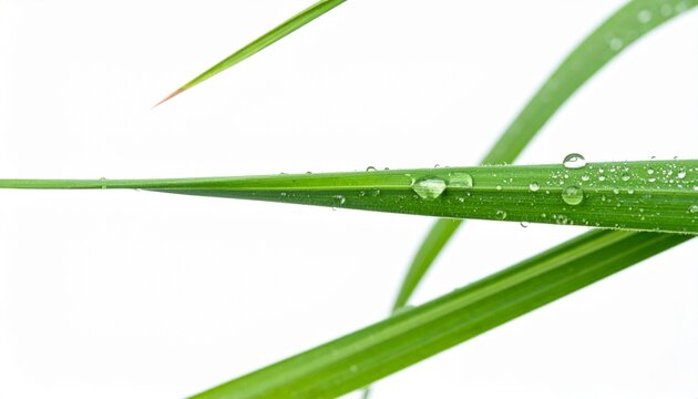 Dew Drop on Grass Blade Isolated on White Background Representing Morning Nature and Life Concept