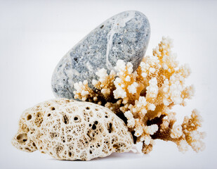 Fresh Coral and Stone Isolated on White Background Representing Ocean Ecosystem and Nature Balance