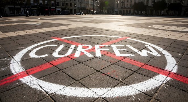 Symbol Of Freedom: Curfew Restriction Prohibited Sign In Urban Public Square
