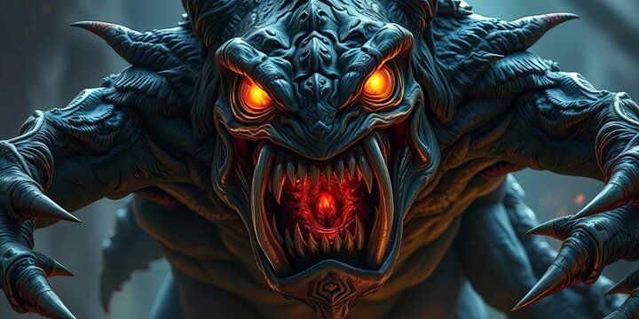 Terrifying Nightmarish Creature with Razor Sharp Claws and Luminous Eyes Emerging from Shadows