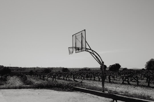 basketball hoop in the middle of vineyard