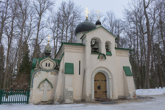 Abramtsevo, Rusia February 5, 2022. Church of Holy Image of the Savior in the Abramtsevo in neo Russian style. Built in 1882 with funds from S. I. Mamontov based on a drawing by V. M. Vasnetsov