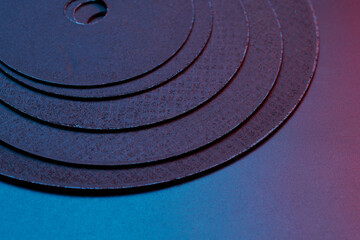 Circular disks equipment for metal cutting. Set of grinding wheels isolated on black background