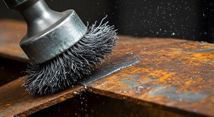 Closeup of a Wire Brush Cleaning Rusted Metal Surface: Industrial Metalwork Detail