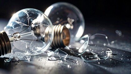 Shattered incandescent light bulbs scatter across a dark surface, symbolizing the abrupt end of an idea or a system's failure