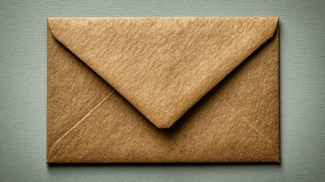 A textured brown envelope with a triangular flap stands against a light greenish background,