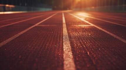 Soft-focused image of a deserted athletics track, highlighting the absence of athletes and the vastness of the field, with subdued tones and soft illumination