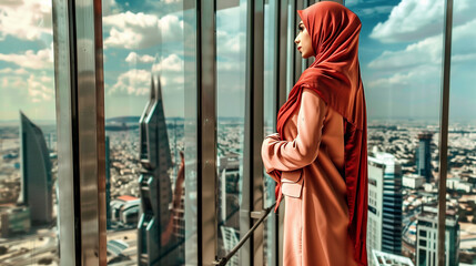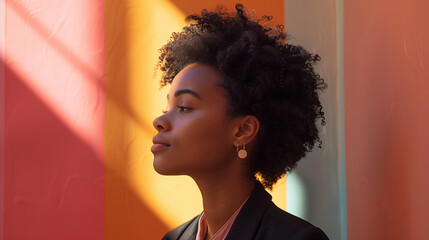 Contemplative woman staring out sunlit window in peaceful reflection