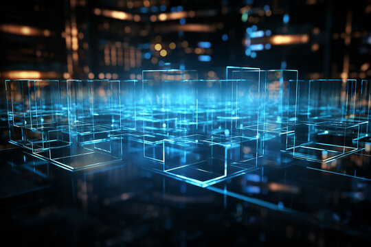 futuristic network technology abstact blue digital pattern bokeh lights background