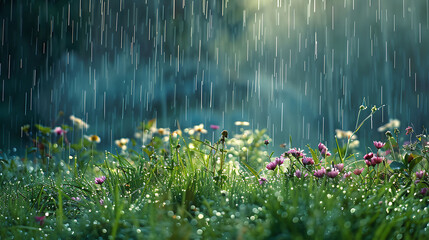 rain on grass and flowers abstrack background