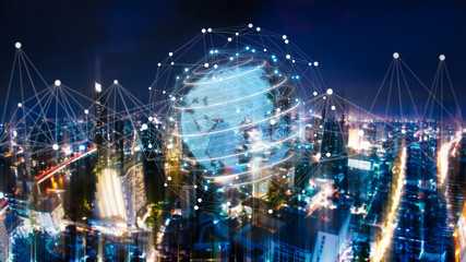Communication technology for internet business. Global world network and telecommunication on earth cryptocurrency and blockchain and IoT. Elements of this image furnished by NASA