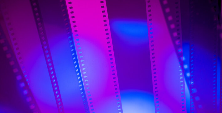 colorful abstract background with film strip. film premiere film production festival film industry concept.