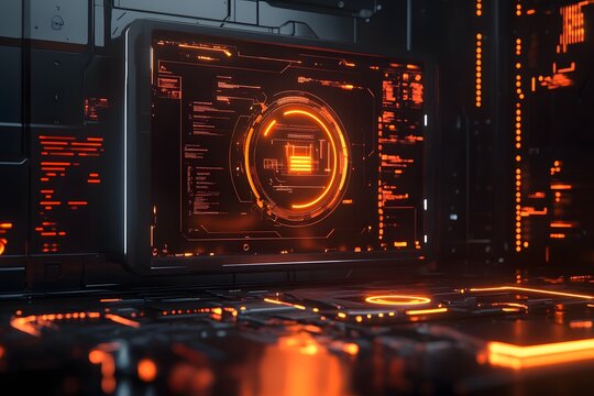 Digital Battlefield Futuristic Landscape of Interconnected Microchips and Circuitry, Illuminated by Central Pulsing Red Energy Core, Representing High-Speed Data Processing, AI, Quantum Computing