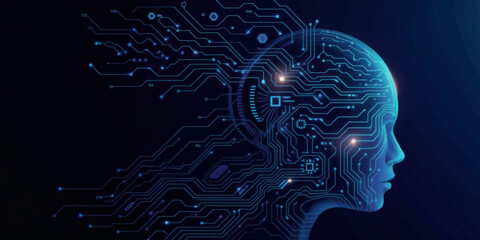 Human head with circuit board pattern representing artificial intelligence and technology for digital transformation concepts