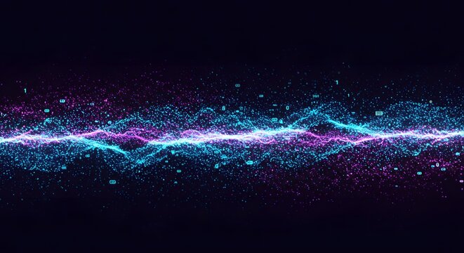 Abstract digital wave with binary code particles conveying data streams in cyberspace