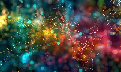 A visually complex web of interconnected nodes representing neural networks in vibrant colors