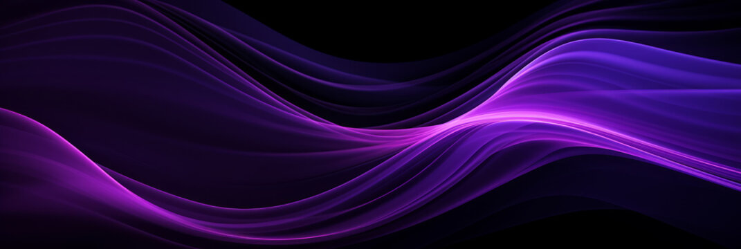 Abstract wavy lines flowing dynamic in purple colors against black background. Digital, communication, 5G, science, music.