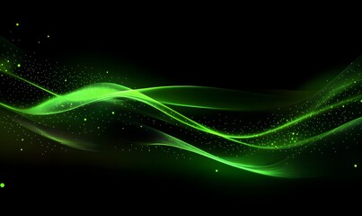 Abstract glowing green waves on black background