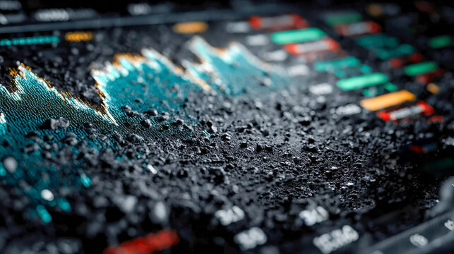 Stock market chart covered with scattered black debris, blending financial data visualization with a gritty, textured overlay