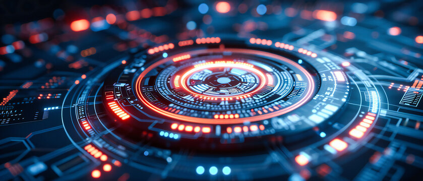 Futuristic digital technology concept with blue circular interface, symbolizing modern innovation and connection