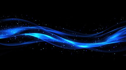 Abstract blue wave background with glowing particles and dark backdrop