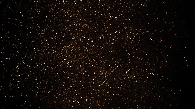 3d Illustration, Small gold dust, graphics of fire flakes, particle points and yellow-orange circles at the centre of the frame